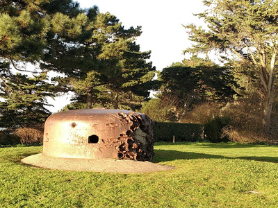 Yesterday on January 28, 2019 Angelina and I set out to walk along the bay and headed South toward the Port in Saint Servan. We discovered the WWII Memorial on Cite d'Alet, and walked around the base ruins. It is an interesting history here, constructed in the mid-18th century, Fort de la Cite d'Alet was used as a German base during WWII. One of the bunkers now houses this memorial, which depicts St-Malo's violent WWII history and liberation. The tour office is closed until the end of March, which offers a guided tour along with a video accompaniment. We took our own tour and even looked inside one of the bunkers. The plaques commemorate the fallen U.S. and French military from 1939-1945. I saw a locking metal door that led to one of the underground tunnels on the site. I found that enthralling and would have appreciated going to have a look at those. We then happened upon a castle, that is astonishingly beautiful. I found some history about it here: