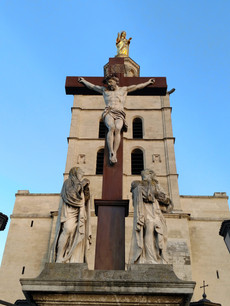 On December 24, 2018 Angelina and I walked around Avignon and found two beautiful churches; Eglise Saint Pierre up at the top and the Notre Dame des Doms for the remainder of the photos. I favor the Golden Statue of Mother Mary, who quite resembles the Virgin of Quito that I am so fond of in Ecuador. She looks over Avignon and also has a crown of stars, without the snake as on Panecillo. Once again, paintings, statues, ornate domed ceilings abound in this cathedral overlooking the city. We walked the famous garden and saw new things, such as this swan fountain that is asleep for the Winter, and this stately tree. I loved the pyrocanthia berries, as they remind me of our home in Pebble Beach, CA. My Dad, had a bush that grew all along our back fence, bright red, just like this one! -Mona
