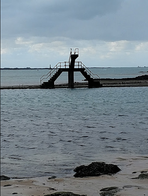 We found many mussels, of which I gathered 12 and took home to cook. Angelina did much research on them, and decided that she did not want to eat one. In this case it was better for her, as the first one I ate (after a boil & a quick saute in butter) tasted good, then I was chewing sand & had to discard the rest. She studied the anatomy of a mussel and found that for such a small mollusk, it had many structures similar to our's. Including; a foot, heart and ganglia (which are their form of a brain), as well as a nervous system. After her research, she opted to not eat one, as she did not like the thought of eating a heart. My cooking experiment was unsuccessful, and I know that the price of 29.00 Euros per dozen of whatever is probably due to the fact that they eliminate all sand! Angelina found many oyster shells, and some Turban shells, a couple of beauties. I loved seeing the beach swimming pool or in French, "Piscine" that I am sure is full all Summer. Outside our apartment window was this plump and so cute turtle dove, so I took many photos of it. -Angelina & Mona