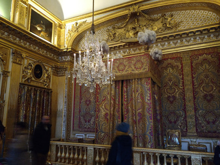 Yesterday, January 12, 2019 Angelina and I had the privilege of visiting the Palace of Versailles. What a beautiful place to live! Louis the XIII built the original palace (much smaller), then Louis XIV established the city of Versailles for the aristocracy and built the palace as it appears today over a period of fifty years. It was the royal residence from 1682-1789, with the last King Louis XVI, who was ousted during the French Revolution (the first one). A colorful history for this palace, and I really loved the Room of Mirrors, a ballroom overlooking the gardens. It is the photo with the glass chandeliers, it was easy to create an image of how a grand ball would take place there. I also admired the quarters for the eight daughters, and especially the library and music rooms, complete with a harp. The gardens are the largest outdoor sculpture gardens in the world. It was a cold and a bit rainy, thus the sculptures were covered in bags for the Winter. The gardens, fountains and French designs were still gorgeous! Angelina saw a swan, so was very pleased. I highly recommend a visit to Versailles. -Mona